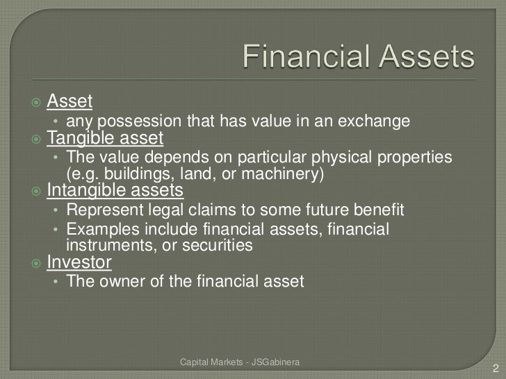 An asset is anything you own that adds financial value, as opposed to a liability, which is money you owe. What is a financial asset? In financial trading, the term asset relates to what is being exchanged on markets, such as stocks, bonds, currencies or commodities. Financial assets vs physical assets the main resemblance between financial and physical assets is that they both signify an economic resource that can be equities enable the invested corpus to multiply over a long period of investment through what is known as the magic of compounding. Financial assets refer to those assets which are in paper form, in simple words they are not tangible as they cannot be seen or touched rather they are in the form of documents specifying the ownership of the holder of such document.