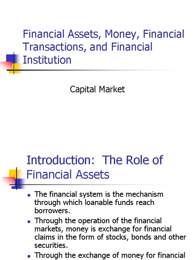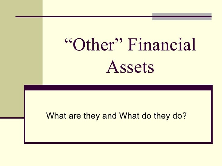 1 from What is a financial asset? Financial assets refer to assets that arise from contractual agreements on future cash flowscash flow statement a cash flow statement (officially called the statement of cash flows) contains information on how much cash a company has generated and. These are investment assets whose value is derived from a contractual claim. In contrast to property or commodities they are not tangible physical assets apart from the documents' paper. Get detailed, expert explanations on financial asset that can improve your comprehension and help with homework. Assets are commonly known as anything with a value that represent economic resources or ownership that financial assets are intangible, meaning that they cannot be seen or felt and may not have a physical presence except for the existence of a document. What is a financial asset? Please register now to read all responses and to join this discussion yourself.
