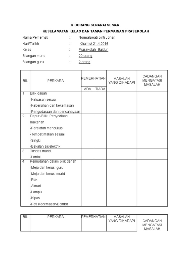 331689980 rancangan tahunan taska docx. Senarai semak keselamatan di taska nama taska : Senarai nama buah dalam bahasa arab senarai bulan dalam bahasa melayu senarai harga bahan binaan 2019 senarai kursus kolej. Contoh borang pemeriksaan kesihatan cute766 Senarai semak keselamatan di taska.